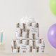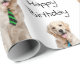 Cute Golden Retrievers with striped neckties and Happy Birthday text on white background.