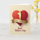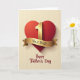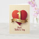 This greeting card features a large deep-red heart filling the upper part of the design, shaded to look softly rounded and inviting, like a warm hug between family members 👨. Centered on the heart is a shiny gold number “1,” catching the light and giving the scene a proud, affectionate focus. A curved gold ribbon wraps along the lower edge of the heart, and a short thank-you message sits neatly on the ribbon in small serif lettering. Below the heart, a Father’s Day greeting appears in flowing cursive-style lettering, placed across the lower section in a dark tone that stands out clearly. The background uses gentle vertical cream stripes, adding a calm, cozy setting that keeps attention on the heart and gold details. Subtle shadows under the heart, the number, and the ribbon make the elements look slightly raised, like a keepsake you’d give with a careful smile and a firm handshake 👔. Behind everything, the cream stripes run straight from top to bottom with even spacing and a soft, warm tint.
