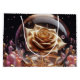 The image represents a golden rose encased within a transparent globe. The rose itself is positioned in the centre of the globe, its golden petals slightly open in a blooming manner. The background is dark, allowing the rose, the globe, and the bubbles to stand out, creating an atmosphere of enchantment and wonder.