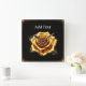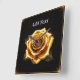 A detailed golden rose surrounded by radiant borders, set against a deep black background. Elegant and luxurious atmosphere ideal for decorative, romantic, or celebratory designs.