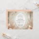 Set the tone for your fairytale celebration with this romantic wedding invitation, featuring a softly glowing woodland scene adorned with rose gold leaves, delicate florals, and magical light sparkles. The ethereal background blends muted blush, bronze, and cream hues to create an elegant, enchanted forest ambiance. Perfect for autumn, winter, or nature-inspired weddings, this design brings warmth and whimsy to your special day. Easily personalise the text with your wedding details to create an invitation as timeless as your love story.