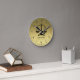 Elegant personalize clock with scales of justice symbol on graphic golden gradient background.