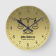 Elegant personalise clock with scales of justice symbol on graphic golden gradient background.