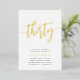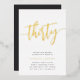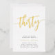 Celebrate her milestone birthday with these chic 30th birthday party invitations featuring "thirty" in modern gold foil hand sketched script lettering. Personalise with your party details beneath. A unforgettable, luxe choice for fabulous 30th birthday celebrations.