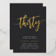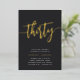 Celebrate her milestone birthday with these chic 30th birthday party invitations featuring "thirty" in modern gold foil hand sketched script lettering. Personalise with your party details beneath. A unforgettable, luxe choice for fabulous 30th birthday celebrations.