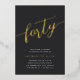 Celebrate her milestone birthday with these chic 40th birthday party invitations featuring "forty" in modern gold foil hand sketched script lettering. Personalise with your party details beneath. A unforgettable, luxe choice for fabulous 40th birthday celebrations.