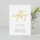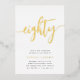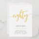 Celebrate her milestone birthday with these chic 80th birthday party invitations featuring "eighty" in modern gold foil hand sketched script lettering. Personalise with your party details beneath. A unforgettable, luxe choice for fabulous 80th birthday celebrations.