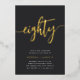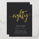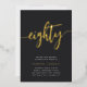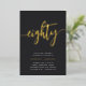 Celebrate her milestone birthday with these chic 80th birthday party invitations featuring "eighty" in modern gold foil hand sketched script lettering. Personalise with your party details beneath. A unforgettable, luxe choice for fabulous 80th birthday celebrations.