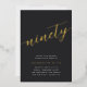 Celebrate her milestone birthday with these chic 90th birthday party invitations featuring "ninety" in modern gold foil hand sketched script lettering. Personalise with your party details beneath. A unforgettable, luxe choice for fabulous 90th birthday celebrations.