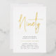 Celebrate her milestone birthday with these chic 90th birthday party invitations featuring "ninety" in modern gold foil hand sketched script lettering. Personalise with your party details beneath. A unforgettable, luxe choice for fabulous 90th birthday celebrations.