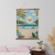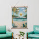 Dive into a fantastical tropical paradise where the sun's golden light transforms the world. This whimsical artwork captures a serene beach scene, where the sand shimmers with a soft, warm glow. Towering palm trees and majestic cliffs are not just silhouettes against the sky, but are rendered in pure gold, reflecting the radiant brilliance of the sun. The water gently laps at the shore, inviting you to step into a world of pure imagination and escape.