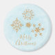 Golden Snowflake Crystals on Frosty Blue Christmas Magnet