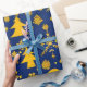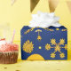 This Christmas card dazzles with a sea of golden snowflakes and Christmas trees, all set against a royal blue background, evoking the splendor of a traditional Ukrainian Christmas with a modern artistic twist.