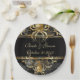 Change the text on this party paper plate easily for Halloween party or customise with Bride and Groom's names - Oddly Elegant, extremely unique, this Glistening gold spiders on webs in front of a black background -May not be for everyone but definitely very unique and oddly enough this is so elegant as the webs sparkle - very elegant collection for Halloween, your wedding or anniversary. This is a great Halloween Wedding choice. Perhaps a wedding for a pest control specialist NOTE: ALL Adornments are digitally created to appear real, they are only a printed design. MORE Matching Products in my Shop - http://www.zazzle.com/wedding_trends in the category Gold Spiders