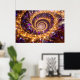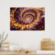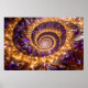 A mesmerising geometric spiral glowing with golden light and deep violet tones, perfect for modern abstract art lovers.