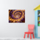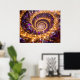 A mesmerising geometric spiral glowing with golden light and deep violet tones, perfect for modern abstract art lovers.