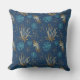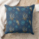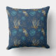 Golden Starfish & Coral Reef Pattern on Blue Cushion