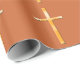 Gift wrap for the religious person, featuring a cool stone effect cross in orangey-gold hues, this almost 3D religious cross is set against a deep orange background.