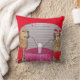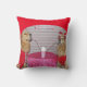 This throw pillow features two golden retrievers sharing a strawberry milkshake.