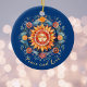 Golden Sun and Floral Mandala Peace and Love Blue Ceramic Ornament