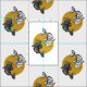 a decorative pattern design featuring lots of monochromatic coloured koi carps swimming in circles on top of big yellow circles on a fabric of your choice.