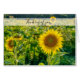 Thinking of you greeting card featuring a large sunflower backlit by the golden sunlight in a field in Willard Missouri, United States during golden hour sunset. If you look close you can see a bumble bee on the flower.