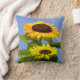 Bright sunflowers against the blue summer sky. They seem to be lifting up their faces to the sun. Add an uplifting beam of summer sunshine to your home with this sunflower pillow.