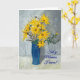 A pretty Mother's Day with the greeting in Welsh and a blue vase of Golden Sunflowers, from an oil pastel painting by Judy Adamson.
