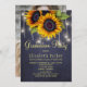Rustic country style PHOTO graduation party stylish invitation template on dark midnight navy blue chalkboard background featuring big yellow gold sunflowers bouquets and strings of twinkle lights. Fill in your information in the spots, You can choose to customise it further changing fonts and colours of lettering. ---- The invitation is suitable for outdoor garden / backyard rustic country graduation evening parties. --- If you need assistance, please contact me!