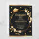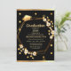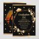 Celebrate a proud moment with this modern black and gold graduation card. The front design features an elegant floral and geometric frame with golden polka dots, while the back showcases a stunning sunset silhouette of a graduate holding up her cap—symbolising hope, achievement, and new beginnings. Perfect for honouring the Class of 2025 with style and sentiment.