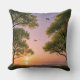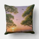 Golden Sunset Ocean Beach Landscape with Trees Cushion