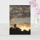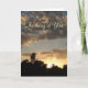A line of trees is silhouetted against a golden sky where god rays radiate from the setting sun in this photograph by Jayne Wilson. The words, "Thinking of You" in pale yellow script, are aligned at the top of the page.