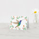 Blank card for all occasions featuring a hand-painted watercolor Golden-tailed Sapphire Hummingbird. Golden-tailed Sapphire Hummingbirds, famous for their rainbow-colours, can be found in humid forests, light woodlands and gardens in Bolivia, Brazil, Colombia, and Ecuador.