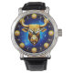 Golden Taurus Bull In Cosmic Zodiac Circle Watch