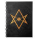 Golden Thelemic Unicursal Hexagram Black Leather Notebook