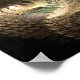 Fractal art showing a feathered golden spiral on a black background and pink and green details.