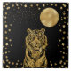 Golden Tiger Stars and Moon on Black Ceramic Tile