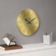 Elegant personalizable clock with golden scales of justice symbol on golden gradient background.
