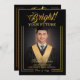 Use this gold graduation invitation to mark a significant occasion! This invitation has a full-length photo of the graduate framed with whimsical, brilliant gold wavy lines, and it has a vibrant gold-inspired design. Adding a personal touch, the word "bright" is printed in a sophisticated script with a gold effect. The ideal way to ask friends and family to join in the celebration is to provide all the information about the impending graduation party on the back side of the invitation. This lively, contemporary design is a wonderful representation of the bright future!