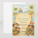 This pirate baby shower design features a whimsical storybook illustration with playful pirate children, tropical palms, treasure chests, and a vintage parchment map at the center. Inspired by classic children’s book art, the warm color palette and detailed scene create a fun, adventurous atmosphere without feeling cartoonish. Ideal for parents who love nautical themes, pirate adventures, and timeless illustrated styles, this design is fully customizable for your celebration details.