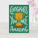 When you want to give someone a trophy for being so gosh darn amazing but you have to settle for a paper card, this is it. A hand-lettered message that says "congrats, you are amazing" around a golden trophy illustration on a green background with easy to customise text inside to really make this card personal.