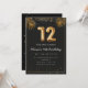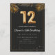 Adorable 12th birthday party invitation in a black and gold balloons design with golden tropical palm leaves. Customize with your party details and mail out to family and friends inviting them to celebrate the 12th birthday with style!