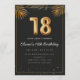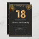 Adorable 18th birthday party invitation in a black and gold balloons design with golden tropical palm leaves. Customize with your party details and mail out to family and friends inviting them to celebrate the 18th birthday with style!