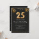 Adorable 25th birthday party invitation in a black and gold balloons design with golden tropical palm leaves. Customize with your party details and mail out to family and friends inviting them to celebrate the 25th birthday with style!