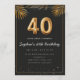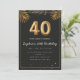 Adorable 40th birthday party invitation in a black and gold balloons design with golden tropical palm leaves. Customize with your party details and mail out to family and friends inviting them to celebrate the 40th birthday with style!