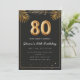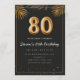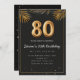 Adorable 80th birthday party invitation in a black and gold balloons design with golden tropical palm leaves. Customize with your party details and mail out to family and friends inviting them to celebrate the 80th birthday with style!