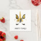 Sweet unicorn face with gold ears, mane, horn and stars.  "Party time" text can be left as-is or customised with a name or special message.
