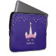 Golden unicorn, flowers & stars on indigo blue laptop sleeve