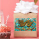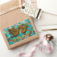 Golden paper-cut od a dragon with drop shadows on a turquoise mosaic background. Design on rectangular sticker with greeting in Vietnamese and small "Happy Vietnamese New Year". Matching postcard, greeting card and rectangular photo magnet. Perfect for Vietnamese Dragon New Year 2024.