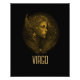 A timeless and elegant representation of the Virgo zodiac sign in radiant gold, set against a striking black background, exuding a sense of sophistication and celestial mystique. This design captures the essence of Virgo's meticulous and discerning nature while adding a touch of luxury to astrological theme.